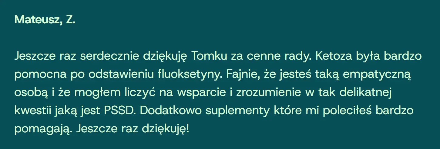Dziś jestem po pełnym powrocie do zdrowia. Odzyskałem emocje, seksualność i sprawność poznawczą. Teraz wspieram osoby, które przechodzą przez podobne trudności.