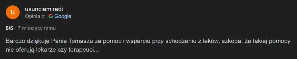 Rozmawiamy o tym, jak długo przyjmujesz leki, jakie były wcześniejsze próby odstawiania i jak czujesz się teraz. To pozwoli mi zrozumieć, od czego zaczynamy.