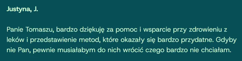 Zanim zaczniemy zmniejszać dawkę, chcę dobrze zrozumieć Twoją historię, to jak się teraz czujesz i w jakiej kondycji jest Twój układ nerwowy. Najpierw dbamy o poczucie bezpieczeństwa i stabilności.